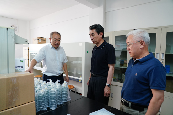 圖為在利洋公司董事長馬家好的陪同下,崔利鋒站長一行參觀利洋水產(chǎn)研究所