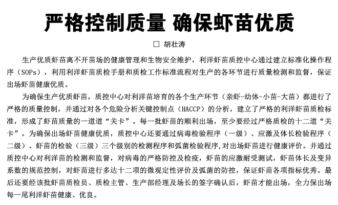 嚴格控制質(zhì)量,確保蝦苗優(yōu)質(zhì)