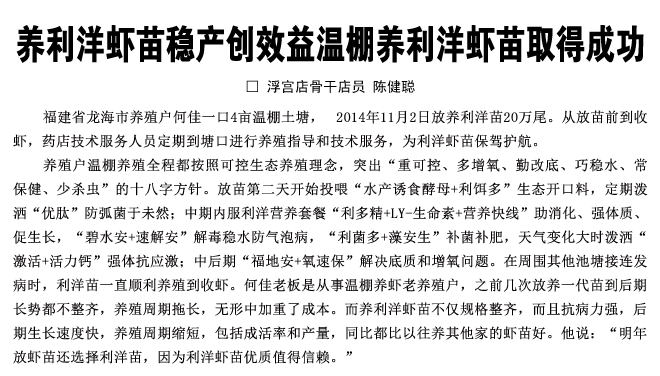 養(yǎng)利洋蝦苗穩(wěn)產(chǎn)創(chuàng)效益溫棚養(yǎng)利洋蝦苗取得成功