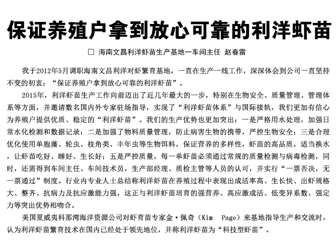 保證養(yǎng)殖戶拿到放心可靠的利洋蝦苗