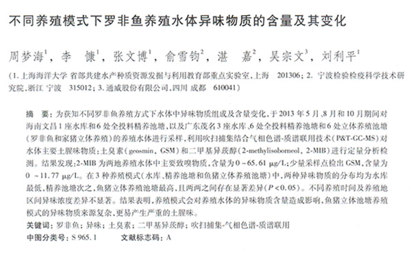 不同養(yǎng)殖模式下羅非魚養(yǎng)殖水體異味物質(zhì)的含量及其變化