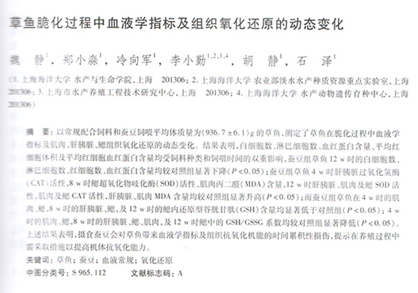 草魚脆化過程中血液學(xué)指標(biāo)及組織氧化還原的動態(tài)變化