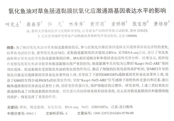 氧化魚(yú)油對(duì)草魚(yú)腸道黏膜抗氧化應(yīng)激通路基因表達(dá)水平的影響