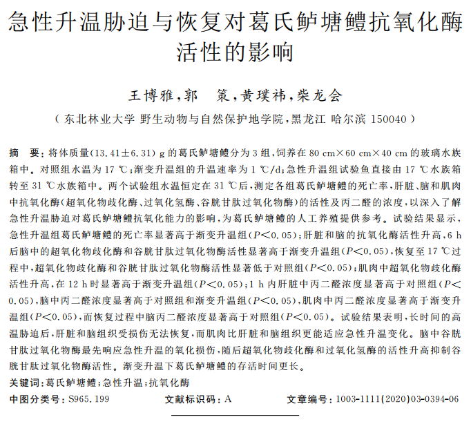 急性升溫脅迫與恢復(fù)對(duì)葛氏鱸塘鱧抗氧化酶活性的影響