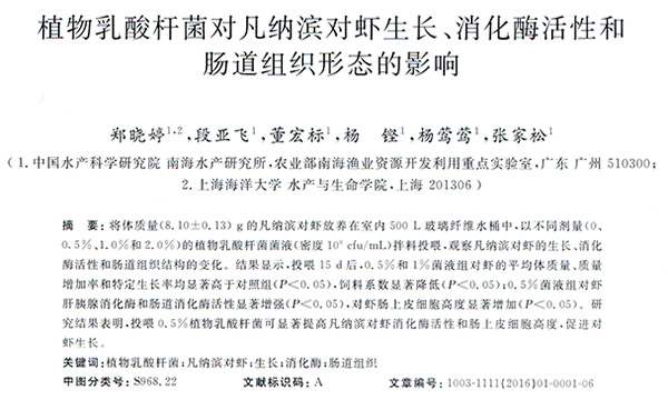 植物乳酸桿菌對(duì)凡納濱對(duì)蝦生長(zhǎng)、消化酶活性和腸道組織形態(tài)的影響