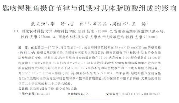 匙吻鱘稚魚攝食節(jié)律與饑餓對(duì)其體脂肪組成的影響