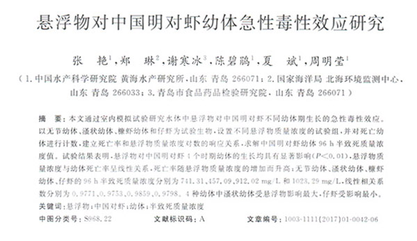 懸浮物對中國明對蝦幼體急性毒性效應研究