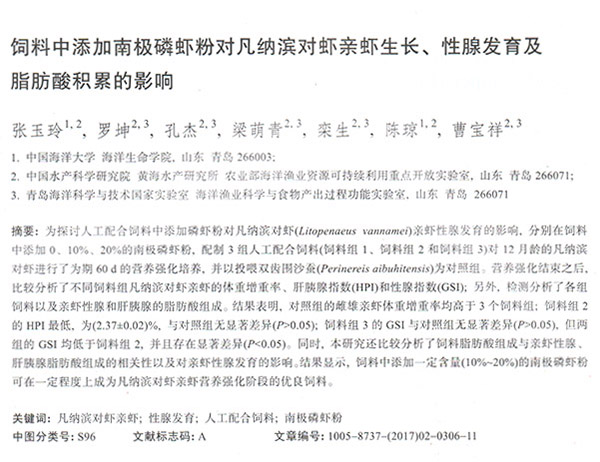 飼料中添加南極磷蝦粉對(duì)凡納濱對(duì)蝦親蝦生長(zhǎng)、性腺發(fā)育及脂肪酸積累的影響