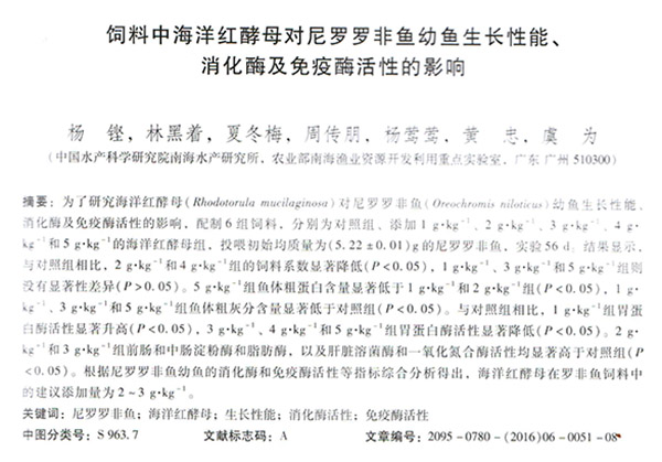 飼料中海洋紅酵母對尼羅羅非魚幼魚生長性能、消化酶及免疫酶活性的影響