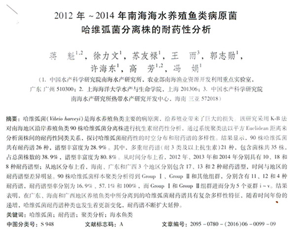 2012年-2014年南海海水養(yǎng)殖魚類病原菌哈維弧菌分離株的耐藥性分析