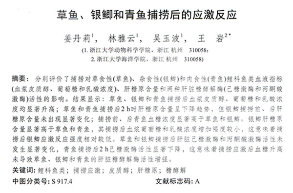 草魚、銀鯽和青魚捕撈后的應激反應
