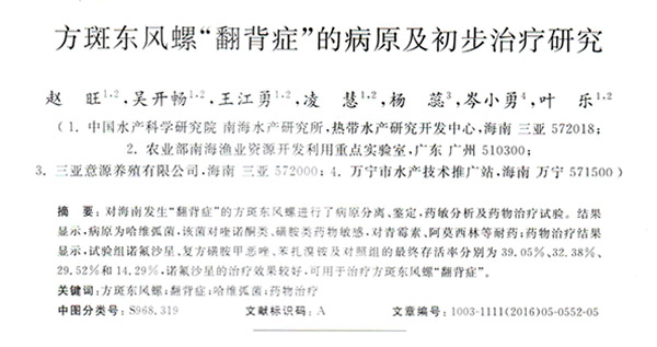 方斑東風螺“翻背癥”的病原及初步治療研究