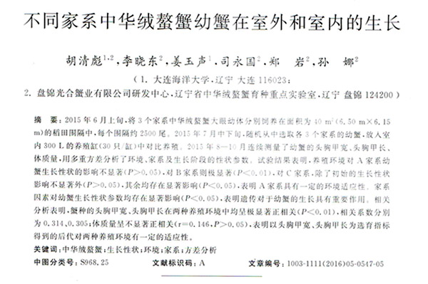 不同家系中華絨螯蟹幼蟹在室外和室內(nèi)的生長(zhǎng)