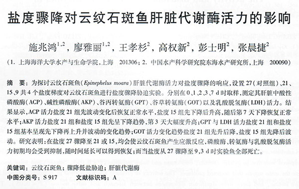 鹽度驟降對云紋石斑魚肝臟代謝酶活力的影響
