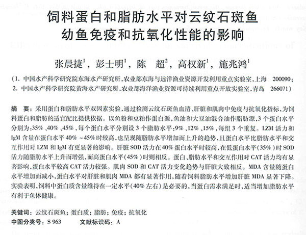 飼料蛋白和脂肪水平對(duì)云紋石斑魚幼魚免疫和抗氧化性能的影響