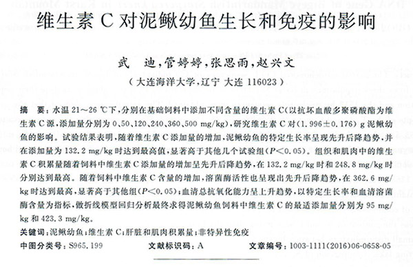 維生素C對泥鰍幼魚生長和免疫的影響