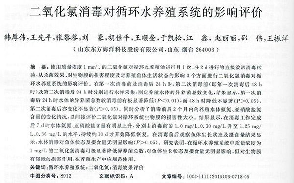 二氧化氯消毒對循環(huán)水養(yǎng)殖系統(tǒng)的影響評價