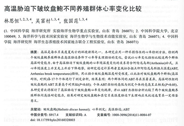 高溫脅迫下皺紋盤鮑不同養(yǎng)殖群體心率變化比較