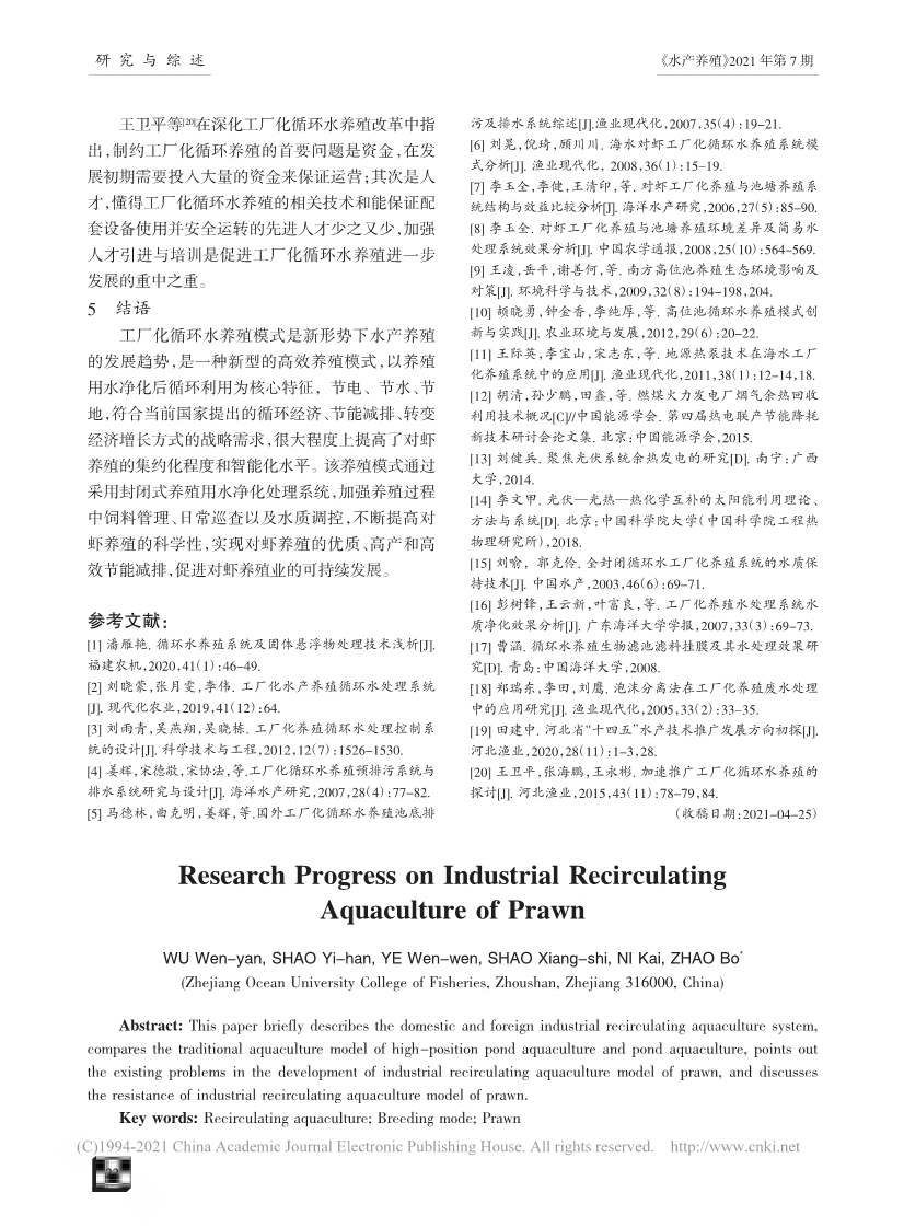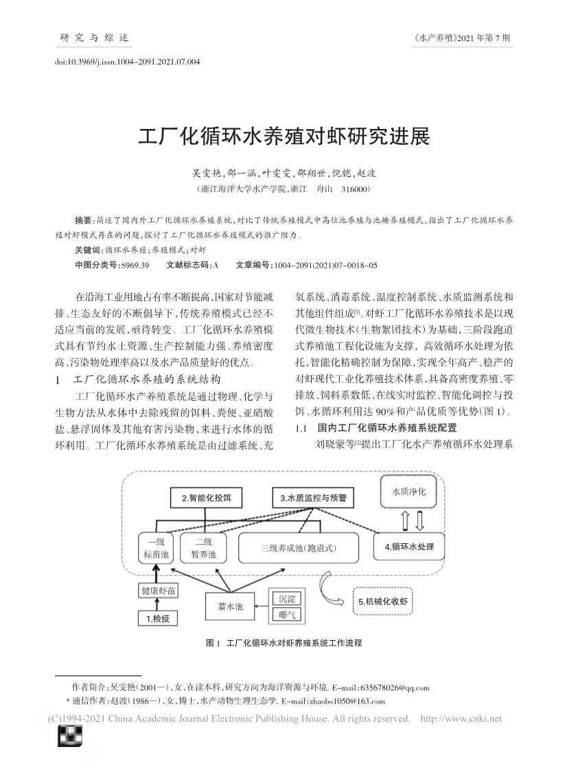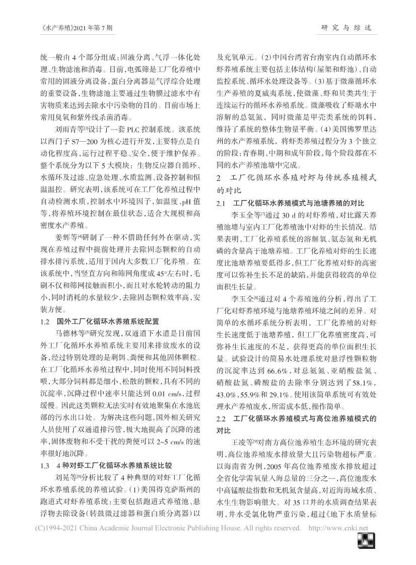 工廠化循環(huán)水養(yǎng)殖對(duì)蝦研究進(jìn)展